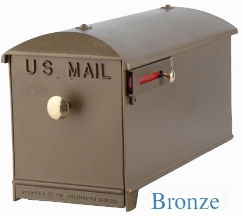 Luxury cast aluminum mailbox with fleur-de-lis on the door and framed rosettes on the sides. Available in black, green, gray, almond, bronze, white, Firethorne and verde finishes. Choice of brass ring or knob pull. Designed for use with Imperial Mailposts.